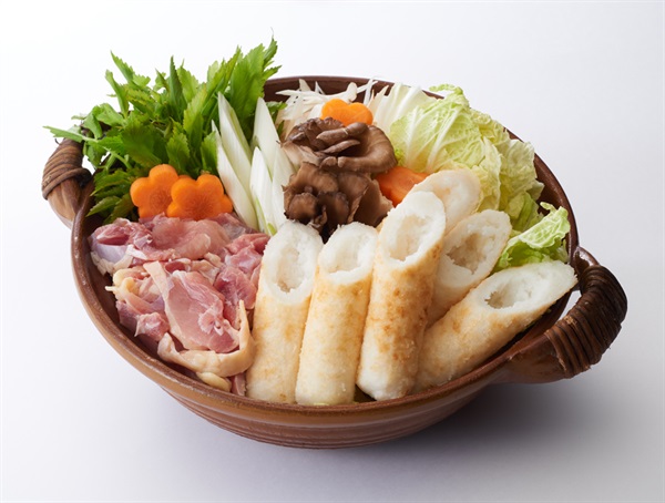 日本三大地鶏と云われる比内地鶏の鶏ガラと鶏肉をじっくり煮込み、小豆島「ヤマヒサ」の醤油と「味の母」をメインに調理したスープ。「有機きりたんぽ(別売)」と合わせて「きりたんぽ鍋」に。