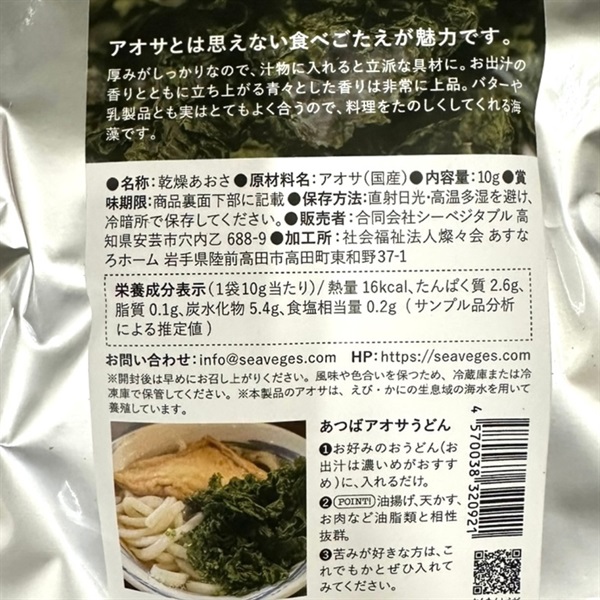 素材の味わいを活かすために、やさしい塩味にしているので、青のりの良さを存分にたのしめますよ。(お好みで塩を足しても◎です)