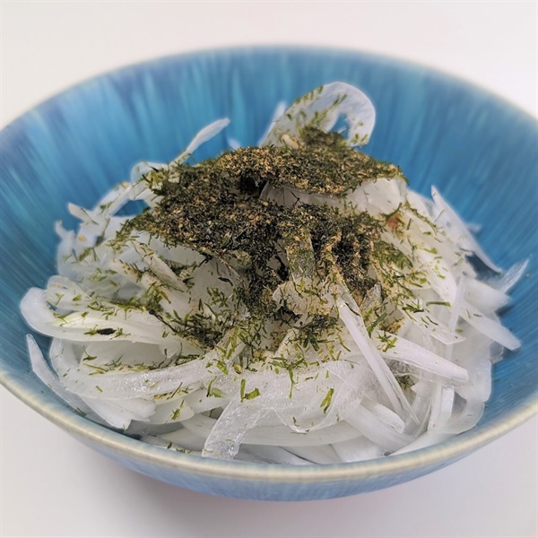 シーベジタブルの「すじ青のり」と、鹿児島県指宿市で丁寧に熟成した鰹節「本枯節」でつくった一品。