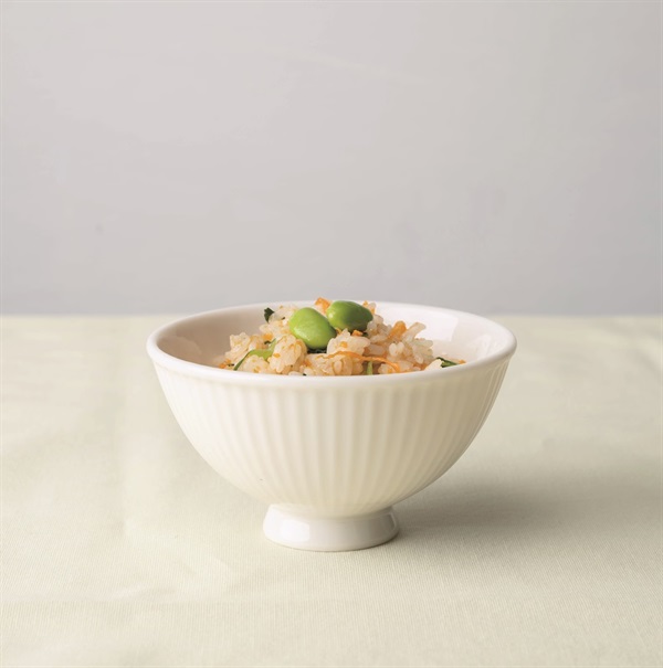 フォルムが美しく、持ちやすい上品なお茶わん。白米も、玄米や五目ご飯も華やかに見せてくれます。
